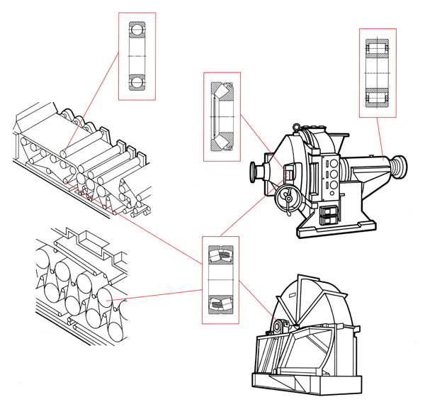 現(xiàn)代造紙機(jī)械的運(yùn)行特點(diǎn)是生產(chǎn)運(yùn)行高度自動(dòng)化,體現(xiàn)出高速、高質(zhì)、高效及對(duì)環(huán)境友好的特點(diǎn)。要求軸承在承受重載、高溫、高速的條件下能夠長(zhǎng)期可靠地運(yùn)行。根據(jù)造紙?jiān)O(shè)備不同部位的應(yīng)用特點(diǎn),開發(fā)了專用系列產(chǎn)品。